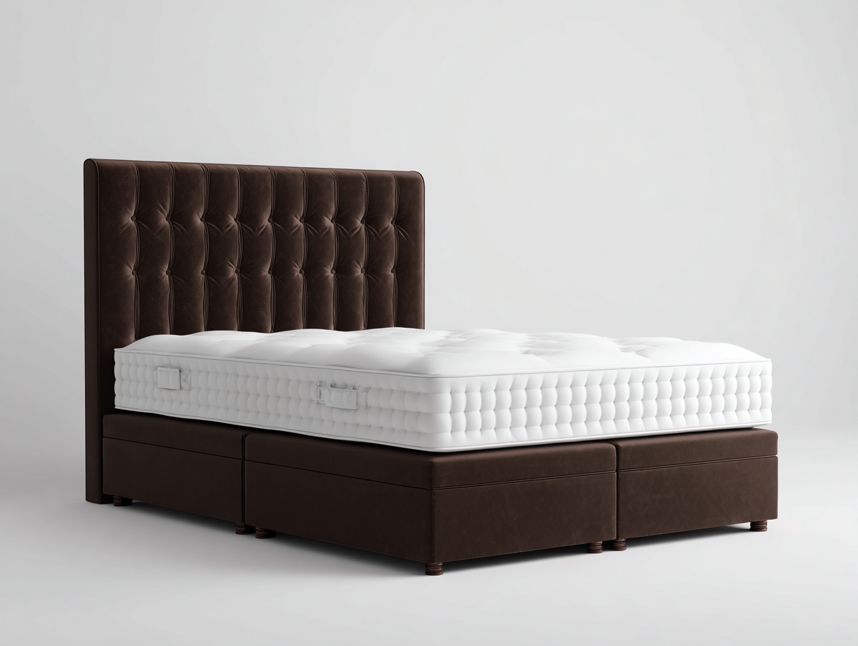 Struttura solida con rivestimento in tessuto marrone scuro.