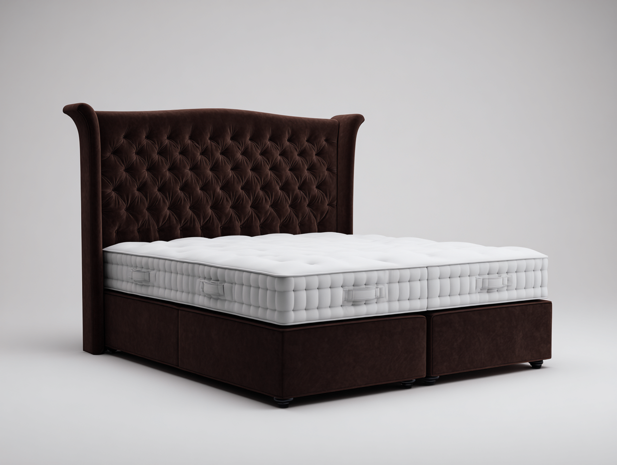 Letto matrimoniale dal design classico con struttura imbottita, ideale per camere accoglienti.
